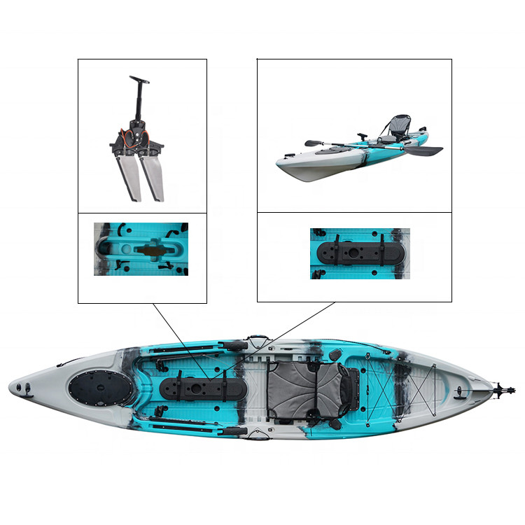 Questo guscio del kajak estremamente ampio offre la stabilità ineguagliabile, la velocità, trattamento superiore per la navigazione su tutte le acque. Kajak stabile eccellente per la pesca o la ricreazione. completamente attrezzato per i vostri bisogni da pesca in mare, il lago o il fiume.