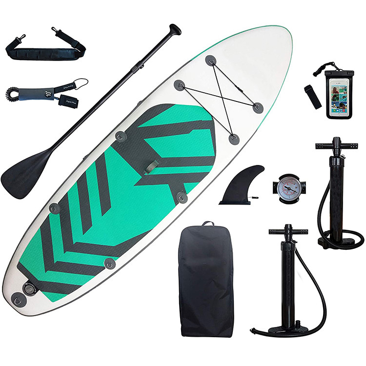 È quello diventante veloce dei bordi più popolari ed è venduto in un pacchetto conveniente del bordo + della pagaia + del guinzaglio. Ciò è il paddleboard perfetto per i principianti che vogliono ottenere sulla rematura di inizio e dell'acqua.