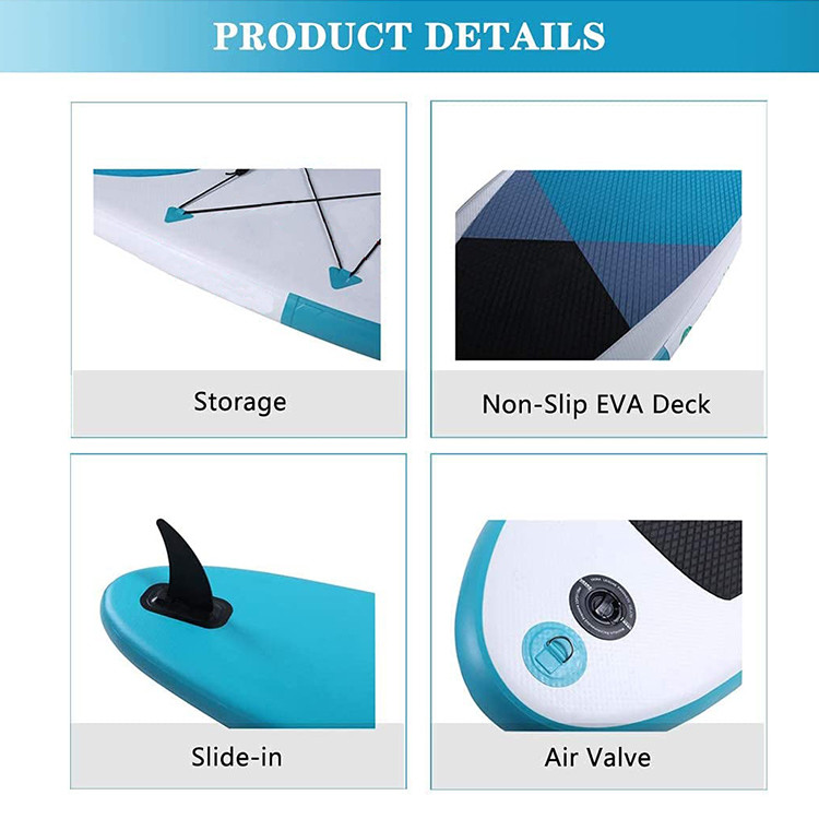 - Alta qualità e robusto: la costruzione puramente fatta a mano e multilivelli di strati del punto che è ottimizzata, il bordo di pagaia adotta l'alta qualità EVA e la costruzione del goccia-punto, che permettono che il surf resista a molta pressione senza deformare o scoppiare. Ed EVA ha buon attrito, che gli impedirà di fare scorrere.