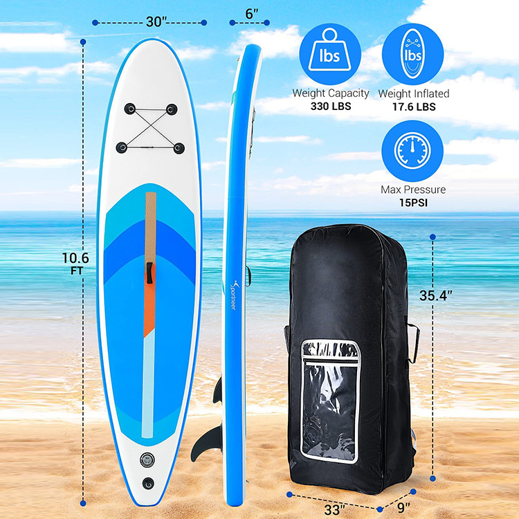 - Spazioso, leggero e forte: La stabilità è chiave! Sostenendo fino a 330 libbre, questo bordo di pagaia stabile è grande per entrambi i principianti ed esperti! Misure 10,6 ft in lunghezza e 30 pollici di larghezza per un giro regolare ogni volta.