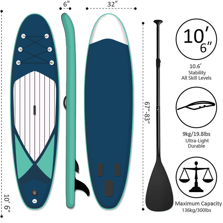 - [il materiale eccellente consegna la migliore qualità]: I bordi di pagaia gonfiabili è fatto del tessuto interno del grado del materiale di goccia del punto del centro militare del PVC, fornendo al bordo leggero più durevole sul mercato, rendono il bordo più durevole, stabile e migliorare per resistere alla pressione, limite del peso fino a 300 libbre. I bordi di pagaia con la morbidezza hanno attenuato EVA antisdrucciolevole il cuscinetto di piattaforma è stato destinato per migliorare la trazione sul bordo e per permettere che i vostri piedi rimangano comodi non importa come lungamente una pratica della pagaia.