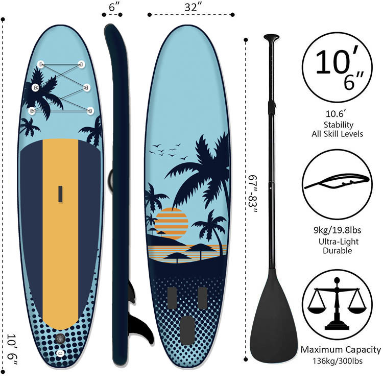 - AMPIO DESIGN&PORTABLE: La dimensione gonfiabile del bordo di pagaia è 10' 6" (L) x30» (W) x6» (t). La capacità di peso è 330LBS. L'ampia progettazione extra crea un bordo completo per i paddlers di tutti i livelli di abilità e migliora la stabilizzazione, specialmente negli più alti ambienti dell'ala. I bordi di pagaia pieghevoli sono molto facili da portare ed installare dovuto il suo peso leggero. E gli forniamo lo zaino migliorato per portare tutta la roba che avete bisogno di.